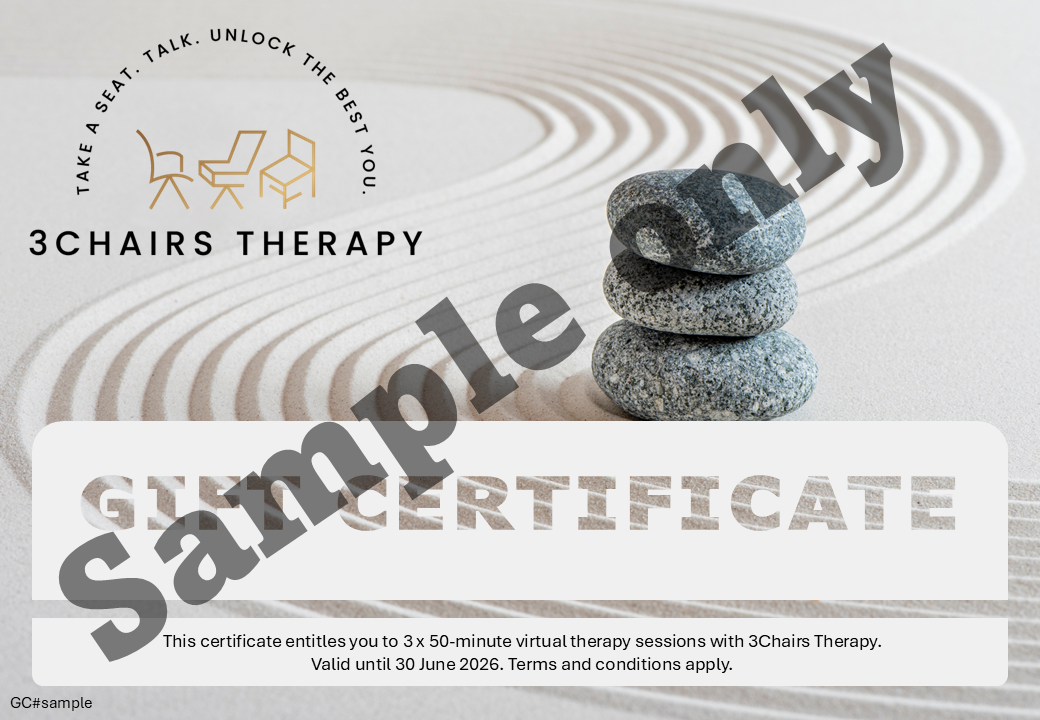 Gift Certificates are available for all 3Chairs Therapy services and are a great gift idea for someone you care about.